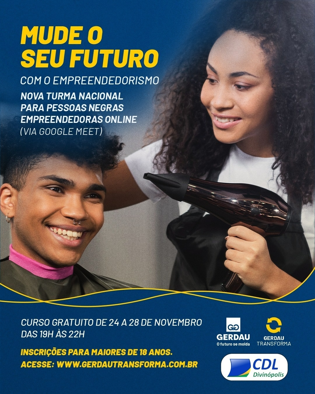 No Mês da Consciência Negra, a CDL Divinópolis é parceira na mobilização de empreendedores locais para o Programa Gerdau Transforma 2025, que está com inscrições abertas para uma turma exclusiva voltada a pessoas pretas e pardas.