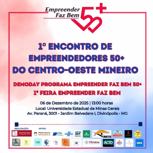 Para coroar o encerramento do ciclo, acontece no próximo sábado, 06 de dezembro, o 1º Encontro de Empreendedores 50+ do Centro-Oeste Mineiro, na UEMG Divinópolis.