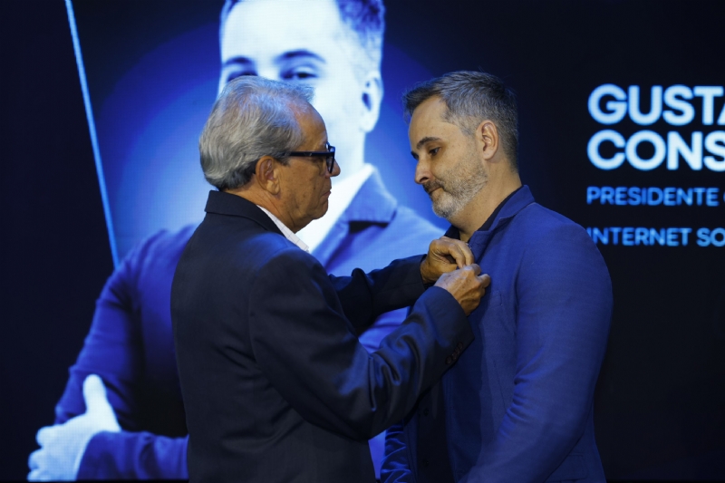 O ex-presidente da CDL, membro do Conselho Superior, Petrônio Aquino, conduziu o ato oficial de posse do novo presidente, Gustavo Consoli, que assinou o termo e recebeu o pin institucional da CDL.