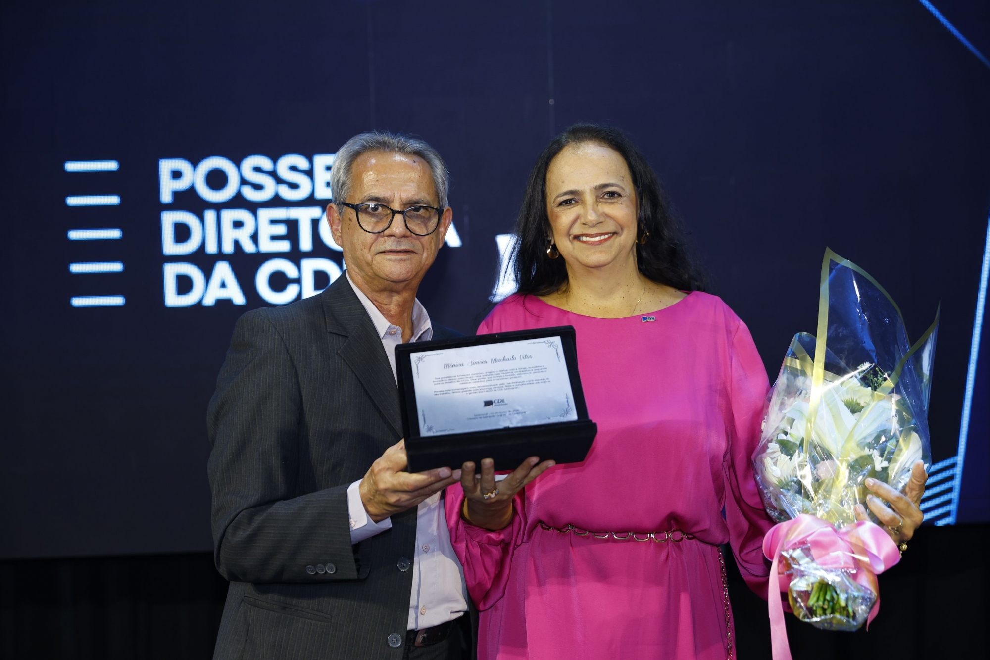Durante a solenidade, foi exibido um vídeo institucional destacando os principais marcos da gestão 2023–2025, presidida por Mônica Simões Machado Vítor.
