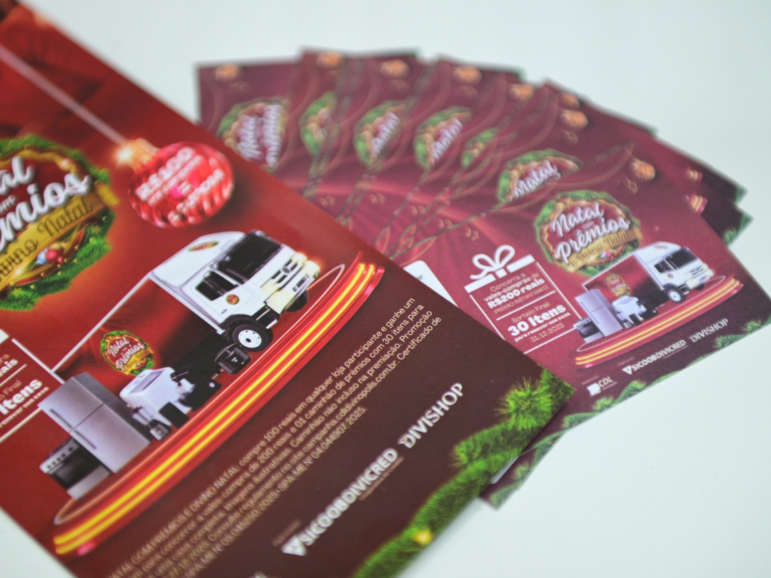 Lançada no dia 24 de novembro, a nova edição da campanha “Natal com Prêmios é Divino Natal”, promovida pela CDL Divinópolis, com patrocínio do Sicoob Divicred e Divishop, promete movimentar o comércio da cidade. Durante o período natalino, consumidores que realizarem compras nas empresas participantes concorrem a vales-compras de R$ 200,00 e ao sorteio de um caminhão com 30 prêmios, para renovar uma casa inteira e começar 2026 de cara nova.